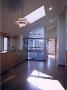 敷地は北側一面道路で、3面が建物で囲まれた採光に恵まれない条件のため、建物中央部に光庭を設け採光の確保に努めました。周辺は日影規制の対象外で将来敷地ギリギリに高さのある建物が建つ可能性がありますので光庭による採光は最も有効な解決策だと考えております。